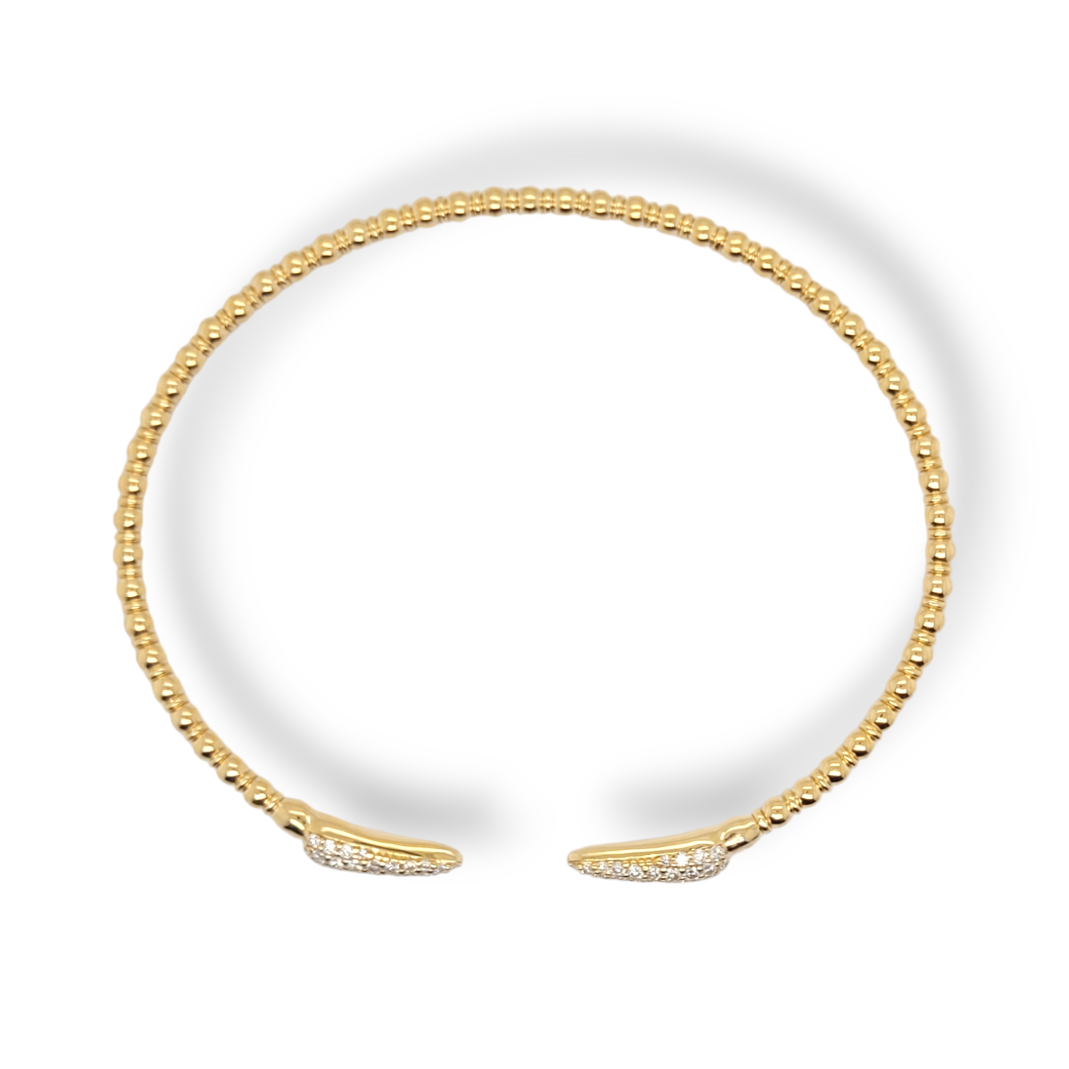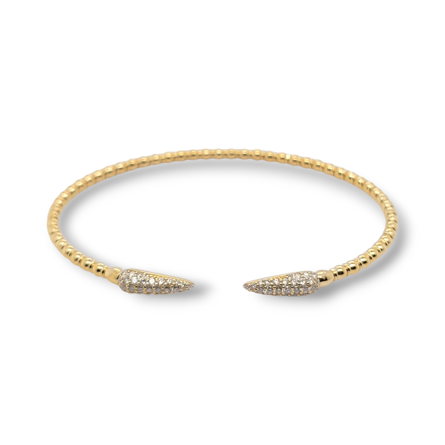 Transform your wrist with this 14k yellow gold cuff with diamonds It's a daring yet sophisticated piece that will make you feel fierce and fabulous. The claws are adorned with pave white diamonds, totaling 0.58 CT. The cuff's width measures approximately 2.25mm.