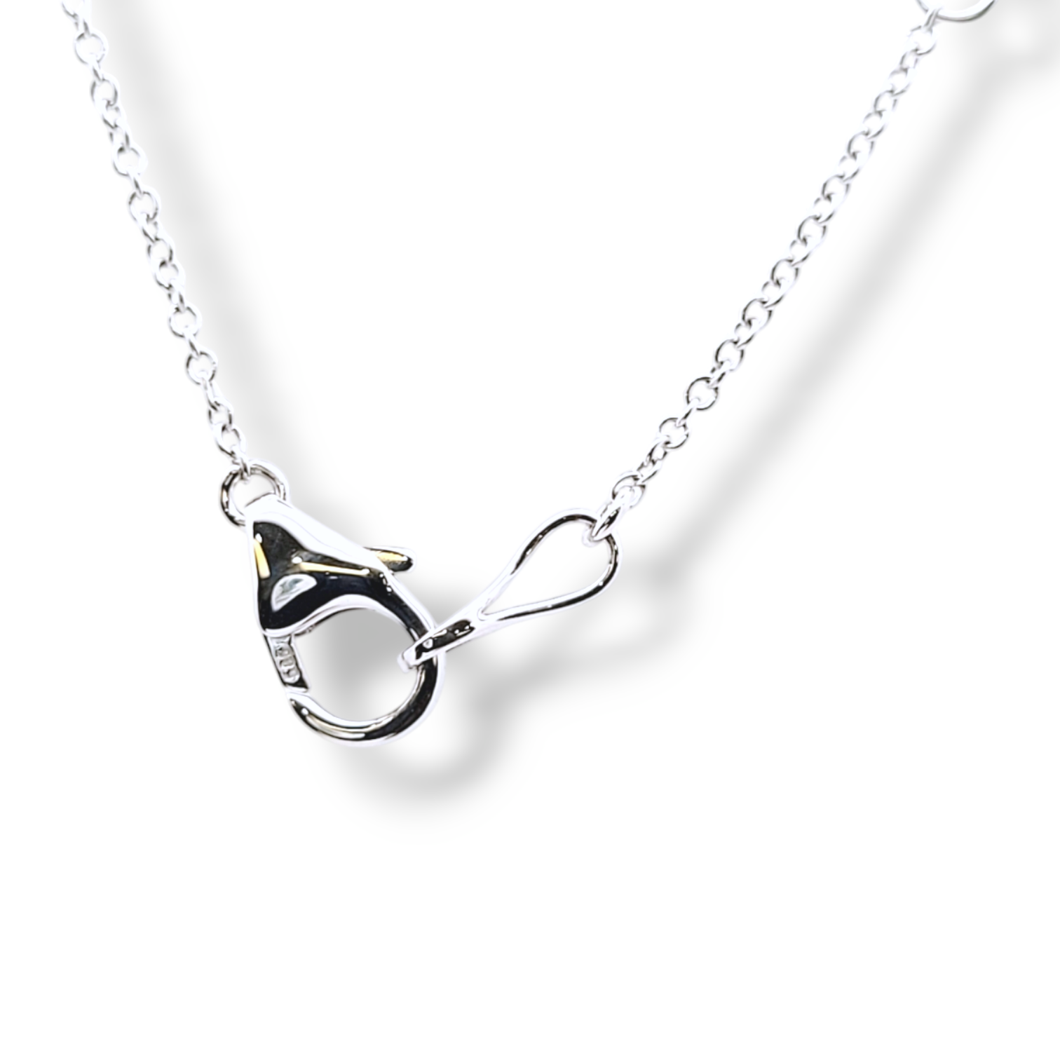 This flower necklace is embellished with pave set diamonds totaling 0.23CTW, This necklace is 16 -17 inches long and the flower is approx 13.25mm. The diamond cut cable chain adds extra sparkle.