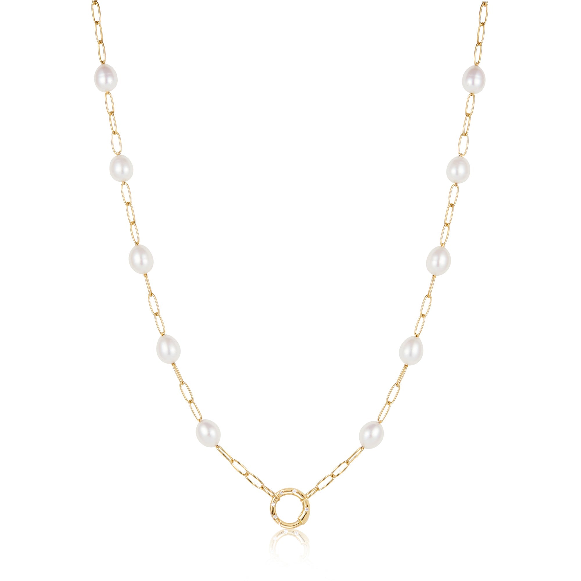 A new way to take on the much-loved pearl trend, try this stunning pearl chain charm necklace, perfect for wearing simply or adding your chosen charms from the Pop Charms collection. Featuring an on-trend gold link chain, discover iridescent pearls, finished with a sparkling cubic zirconia-encrusted connector. Elevate with classic or statement charms to complete your look.