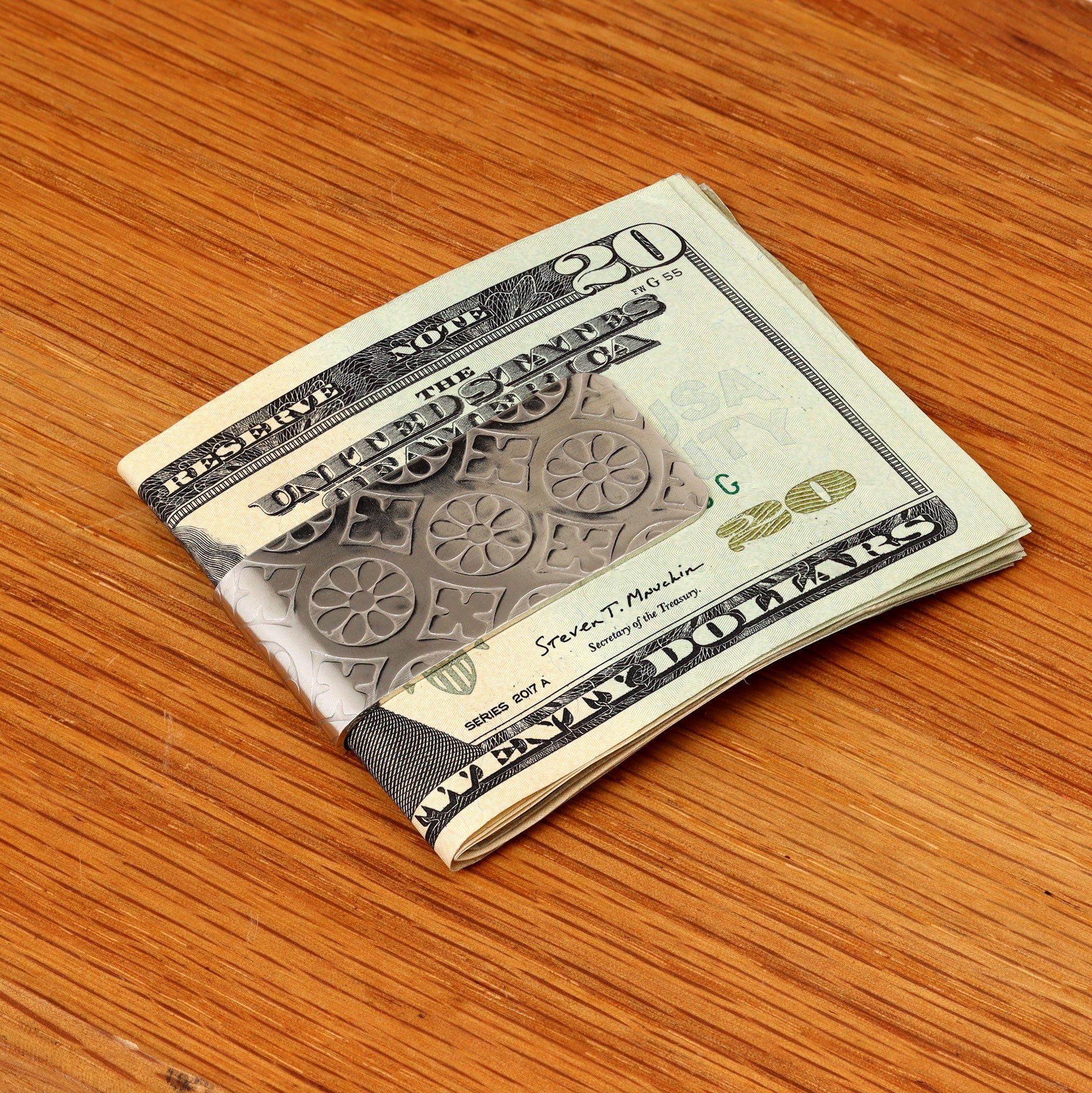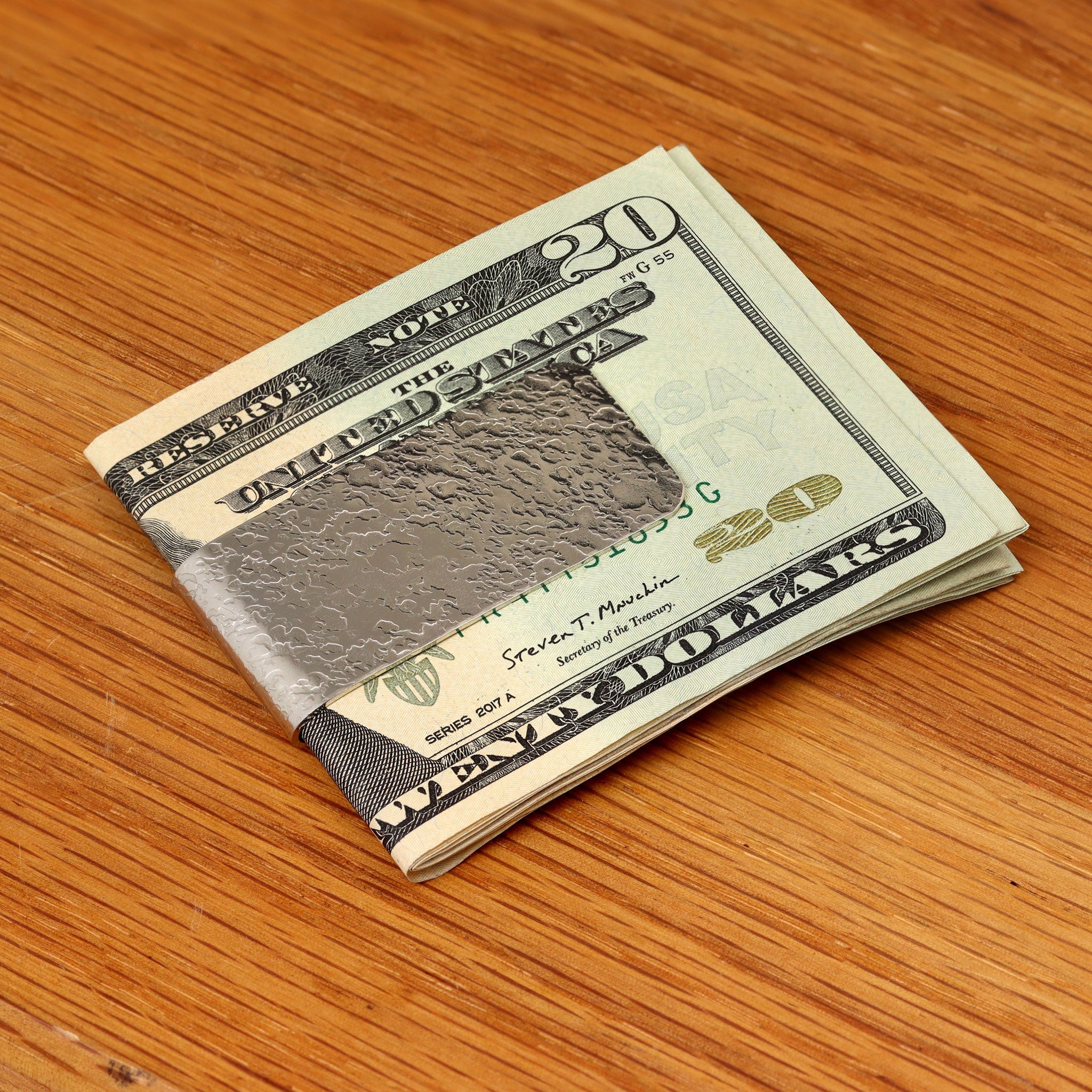 Add some personality to your cash carrying game with our Patterned Money Clips. They feature embossed, patterned metal for a one-of-a-kind texture, making them a stylish and functional accessory. Each clip is hand forged, ensuring top quality. Keep your cash secure with a touch of quirkiness without the risk of tearing or abrasion.