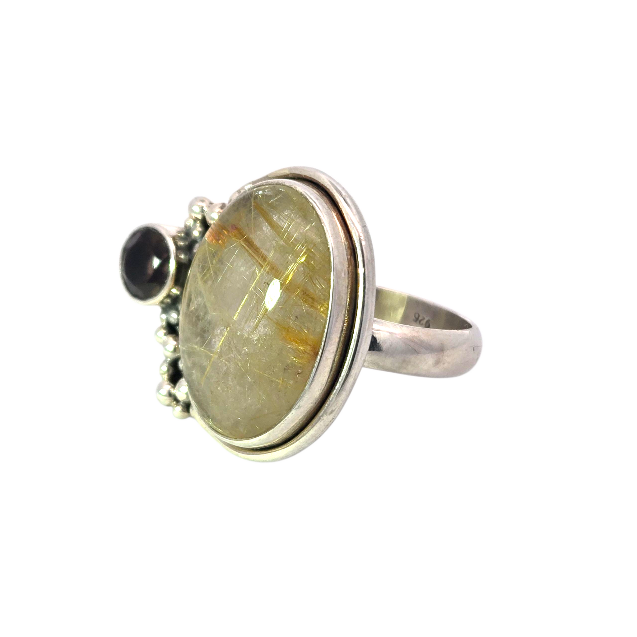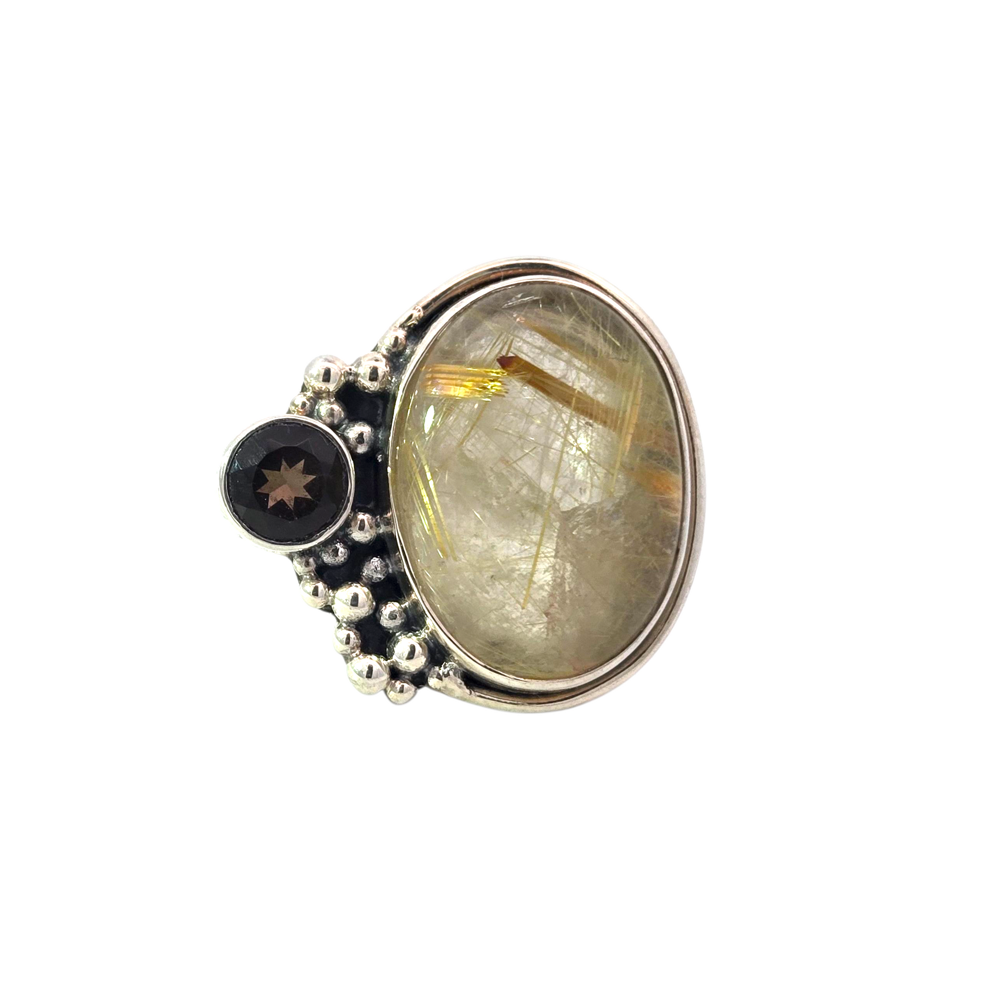 Sterling Rutilated Quartz with Smokey Topaz Ring