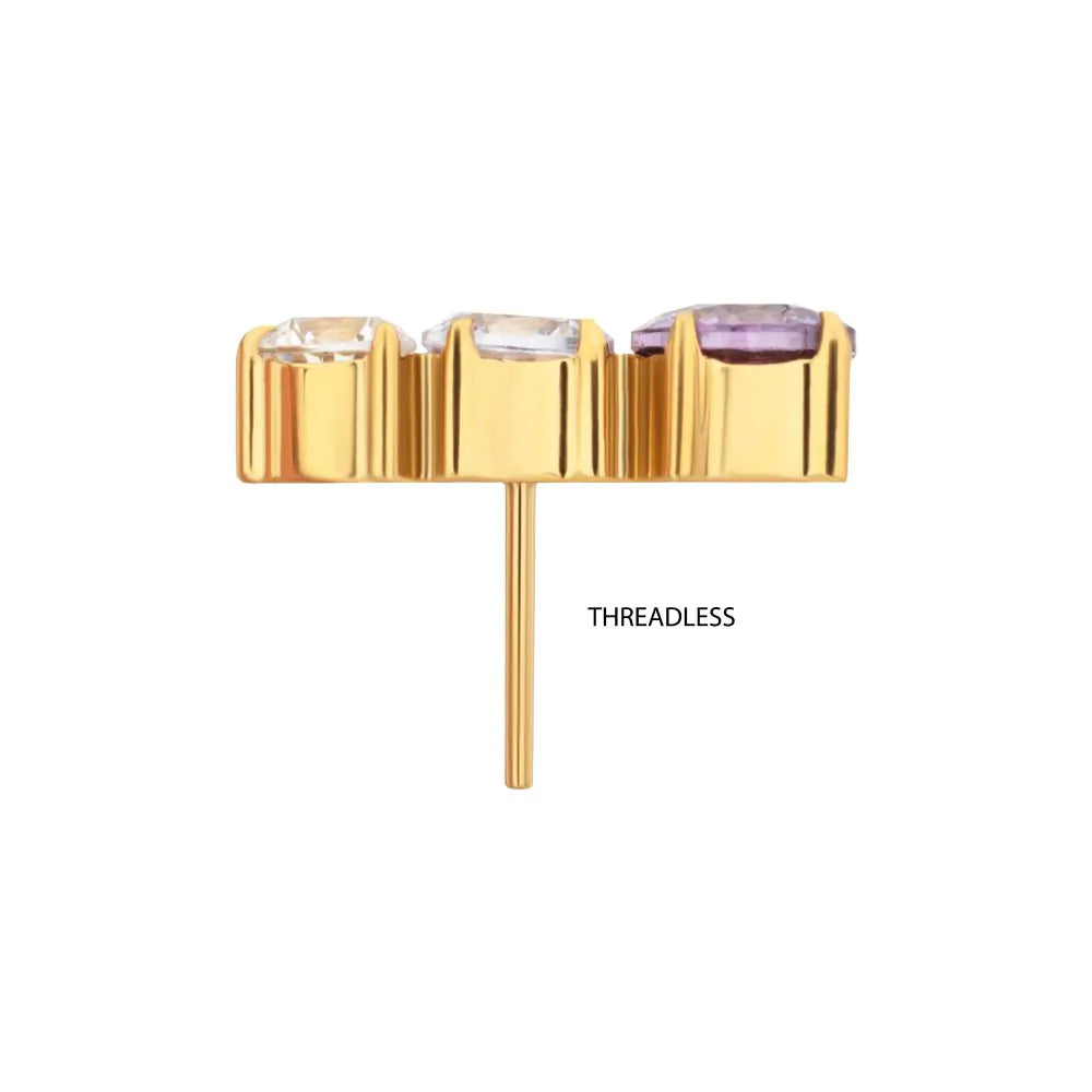The Invictus 24KT Gold PVD Titanium “Radiant Arc" Gem Threadless Top combines sleek geometry and radiant color for a look that’s effortlessly sophisticated. Pin Size: 0.45mm x 4.7mm.