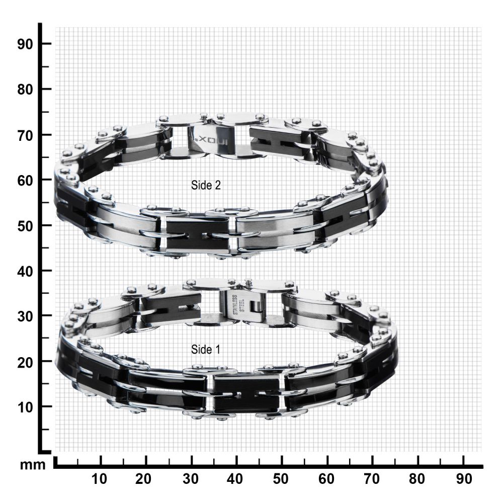 Stainless Steel & Black IP H-Link Reversible Bracelet with Fold Over Clasp Bracelet, 7.75" + 1 Self - Adjustable Link.