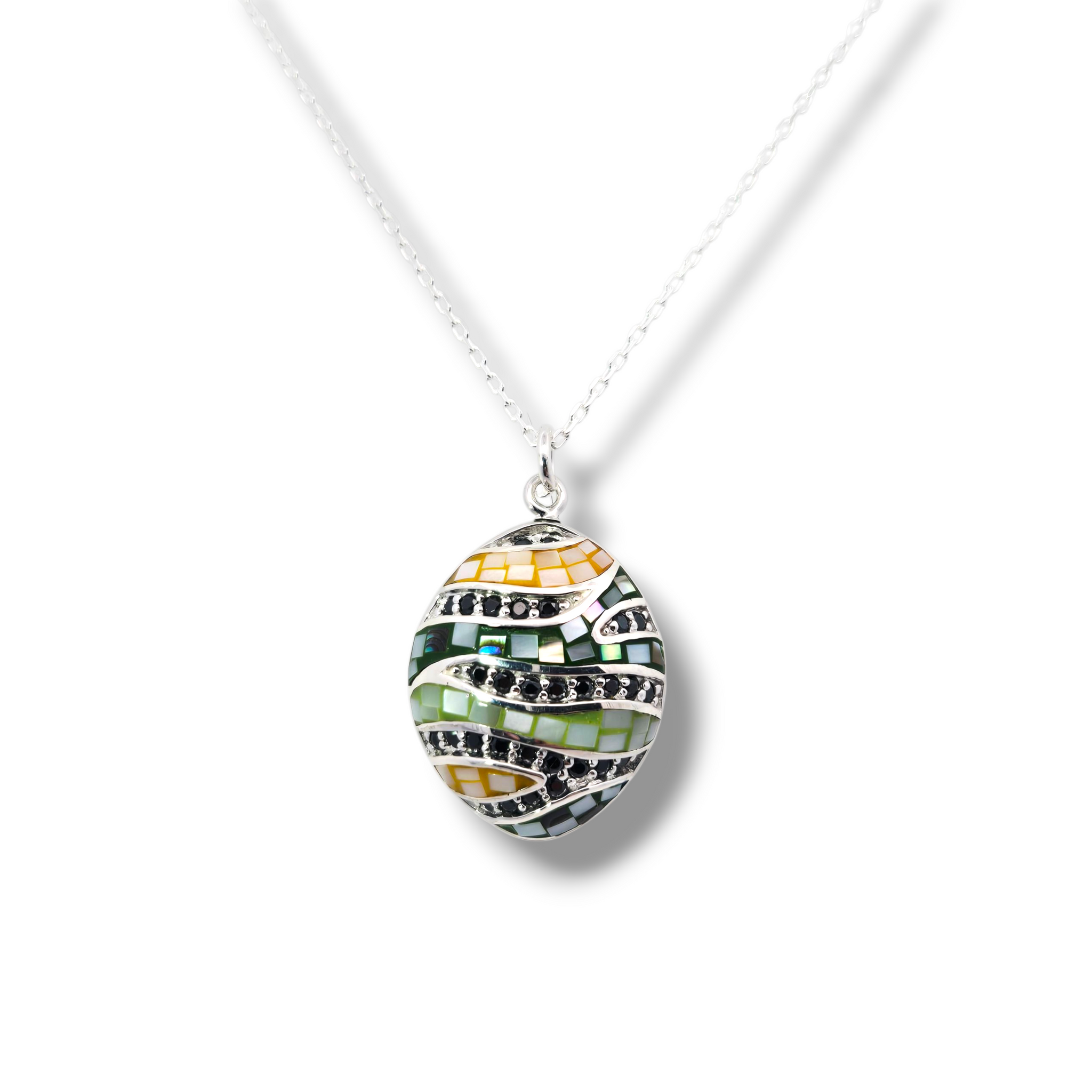 - Orange and green Mother of Pearl mosaic with enamel inlay