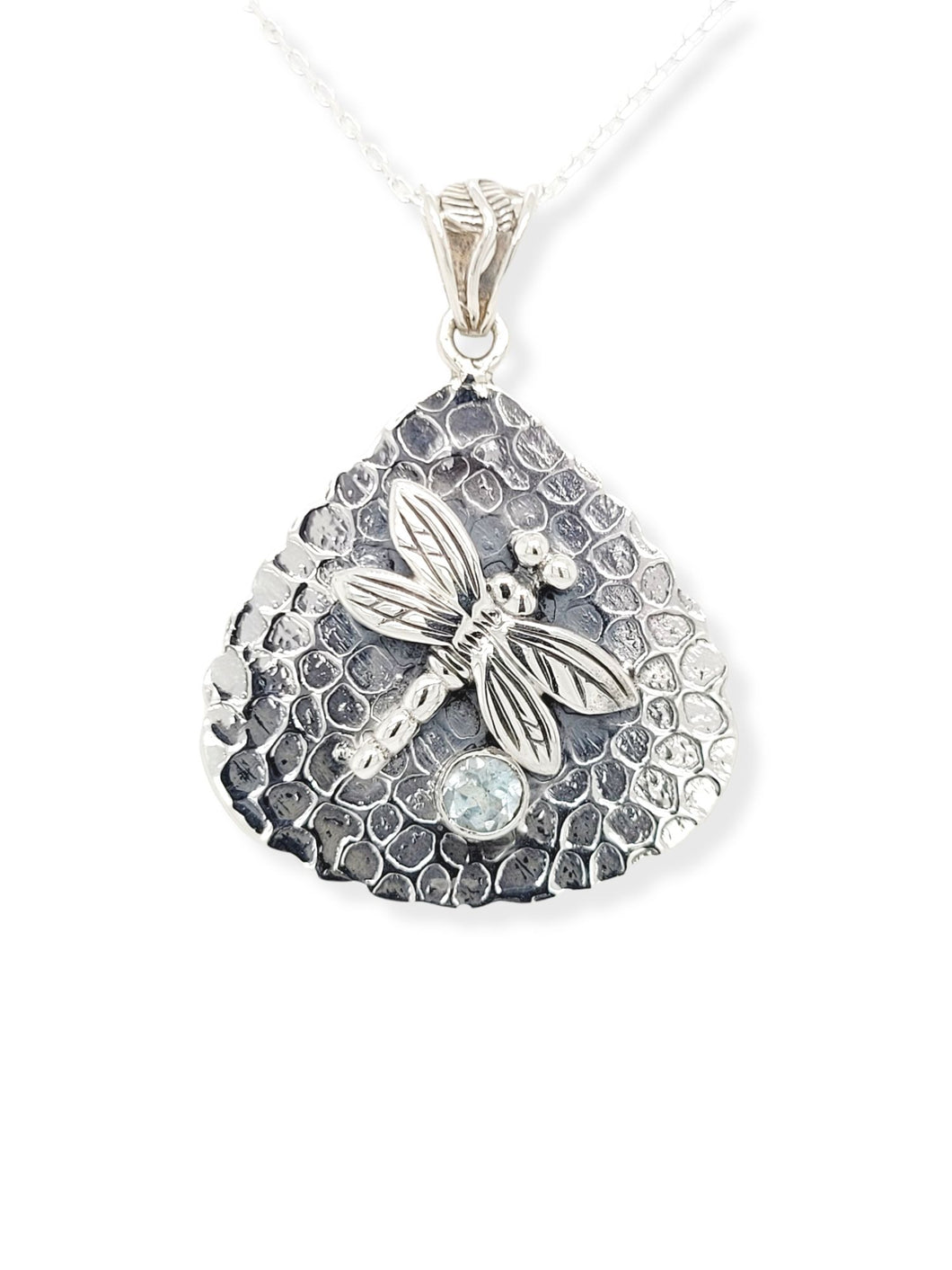 Sterling Silver Dragonfly Pendant with Blue Topaz