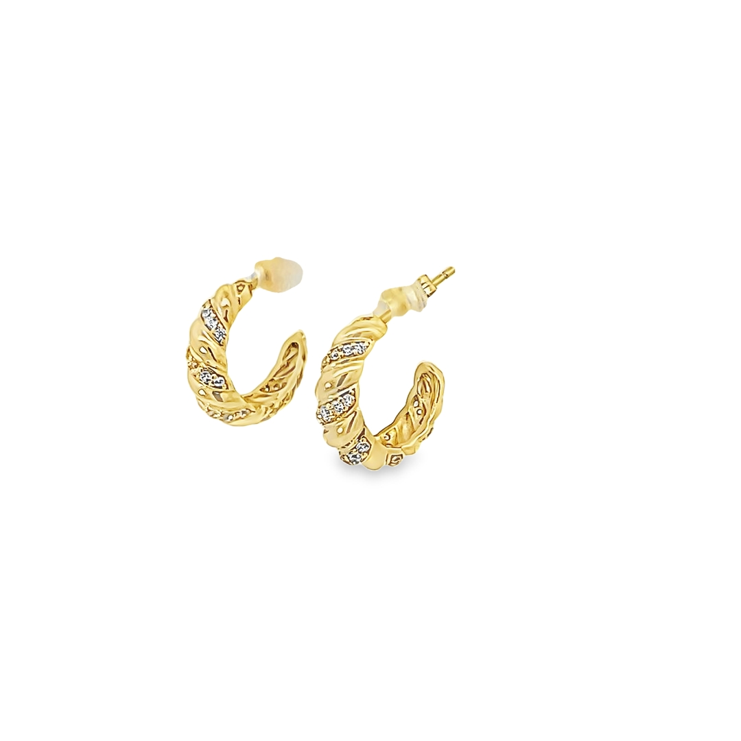 Gold plated sterling silver hoop earring with CZ accents and post back